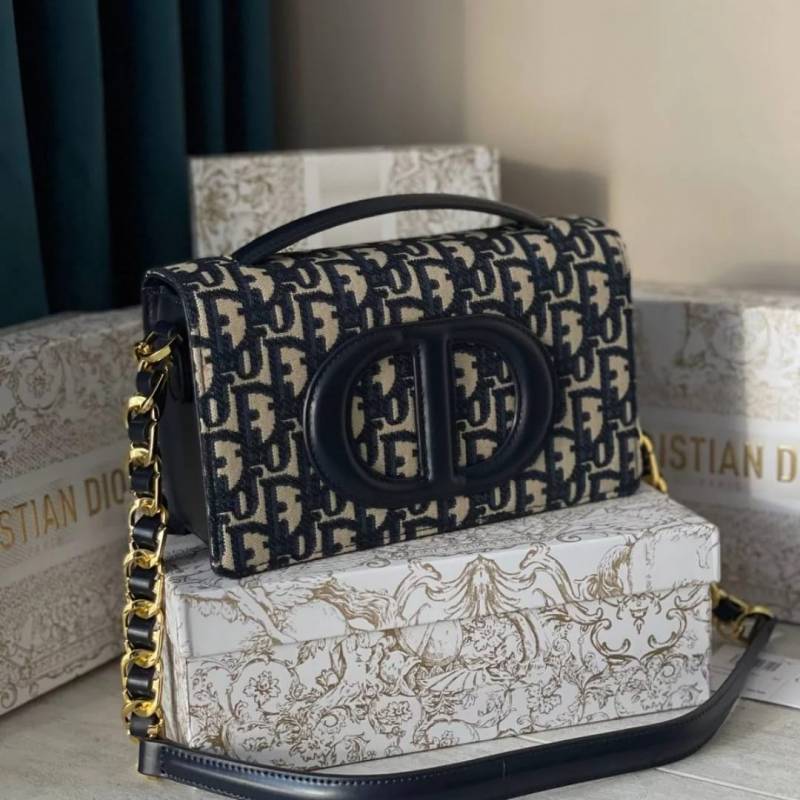 DIO.R SIGNATURE CHAIN BAG 21 IN BLUE OBLIQUE JACQUARD